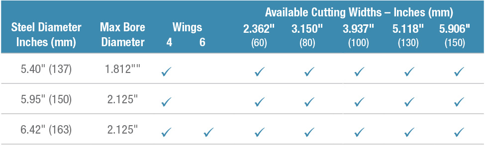 Do not exceed the listed maximum bore diameter.Features