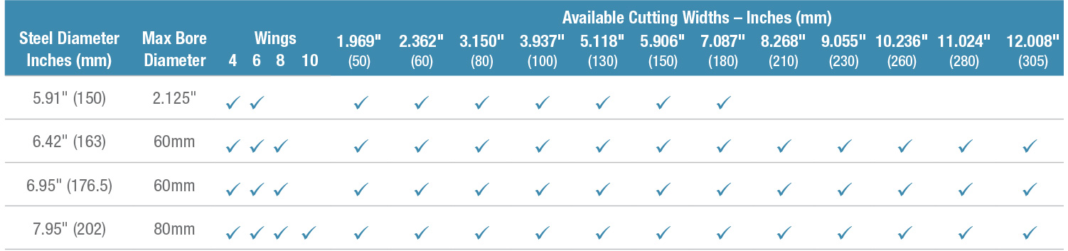 Do not exceed the listed maximum bore diameter.Features